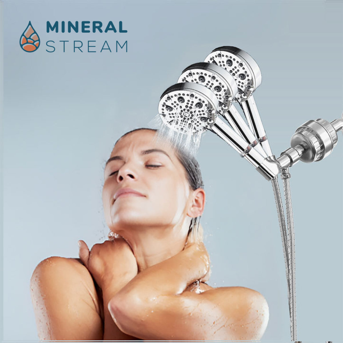 Spa-Quality Shower, Every Day As shown in the second image, Mineral Stream provides a refreshing, high-pressure shower using mineral-infused filtration — for softer skin, healthier hair, and pure relaxation.