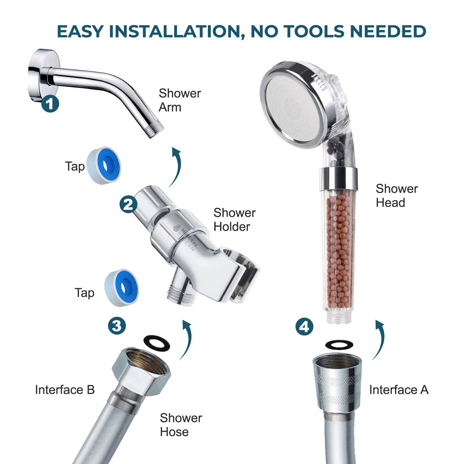 Ja, Mineral Stream har en standardtilslutning ligesom andre brusehoveder. Det betyder, at brusehovedet passer perfekt i 95% af husstandene. Så du behøver ikke bekymre dig om installationsproblemer. Hvis du stadig er i tvivl, tilbyder vi en bruserslange, der passer.